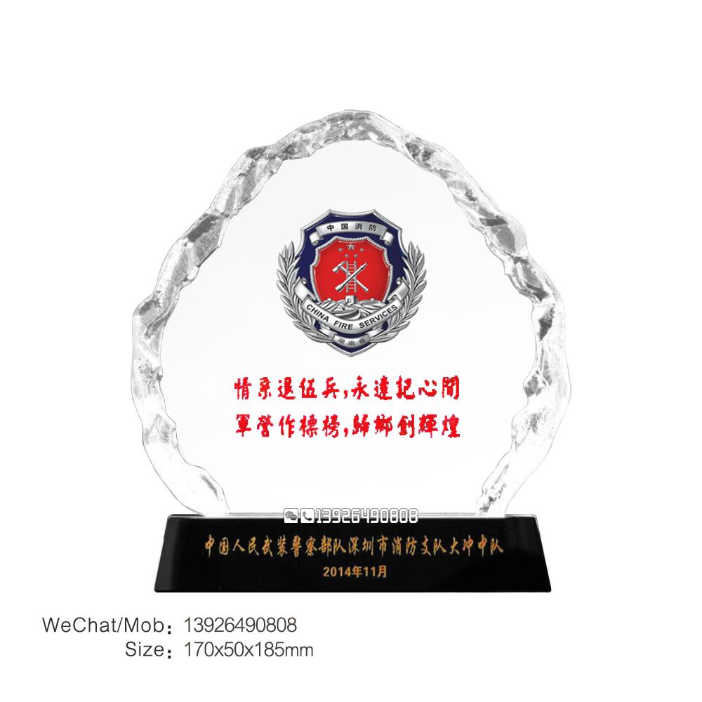 优秀消防救援人员训练荣誉水晶奖牌纪念牌定作制做烈火英雄奖牌